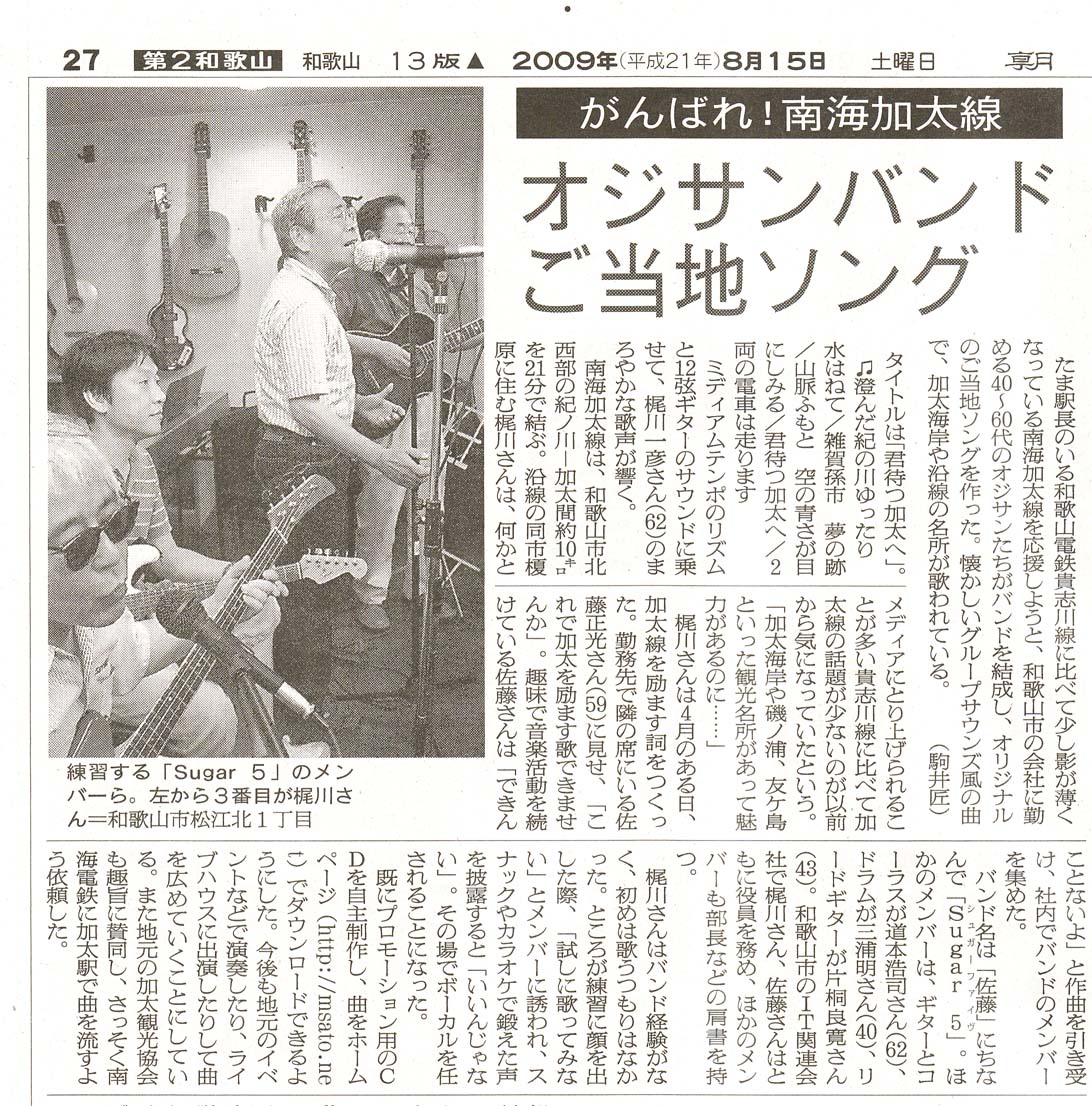 朝日新聞/和歌山版記事「オジサンバンドご当地ソング/南海加太線」