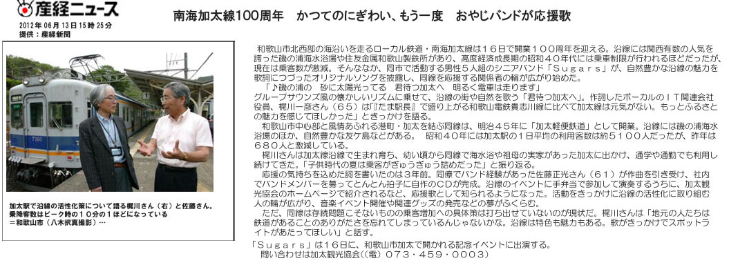 2012年6月13日夕刊 加太線開業100周年産経新聞記事